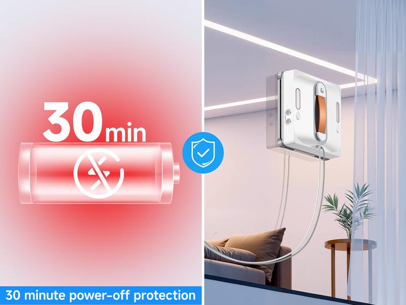 Umfassender Sicherheitsschutz Unser automatischer Fensterreinigungsroboter verfügt über mehrere Sicherheitsschichten, damit Sie sorgenfrei reinigen können: