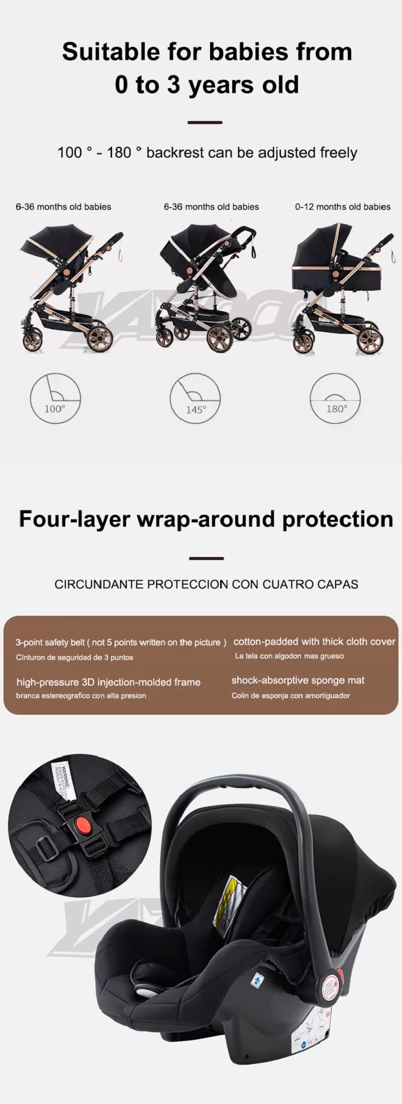 Luxuriöser 3-in-1 Kinderwagen faltbar für Reisen zusammenklappbar