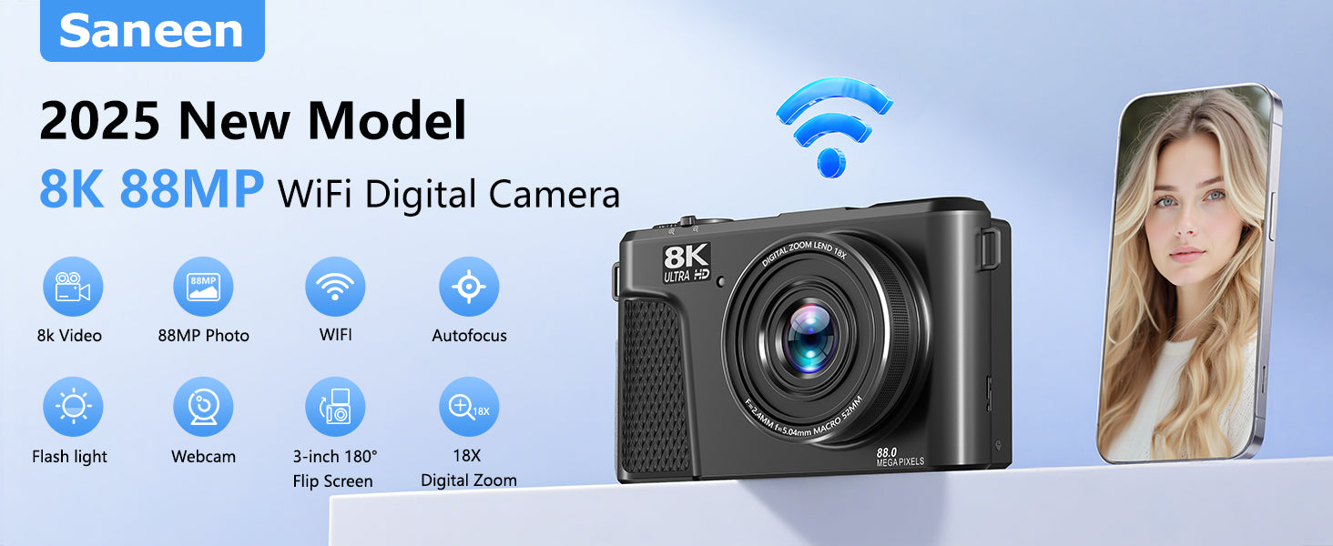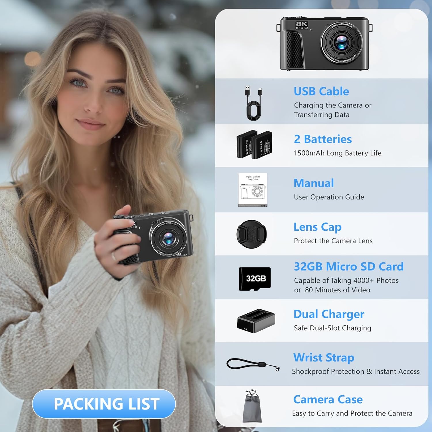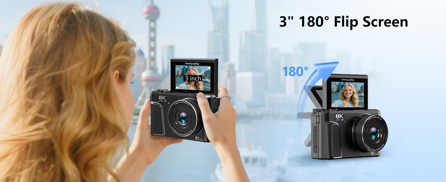 8K-Digitalkamera mit 88 MP und 3-Zoll-180°-Klappbildschirm