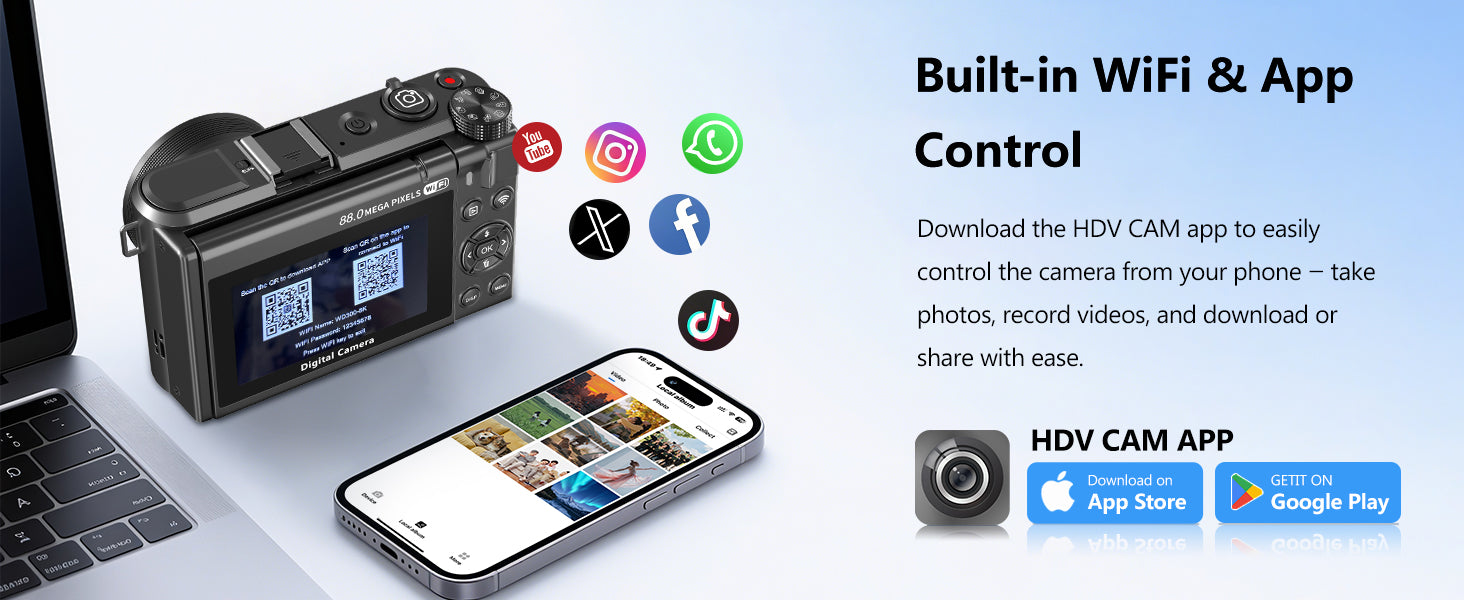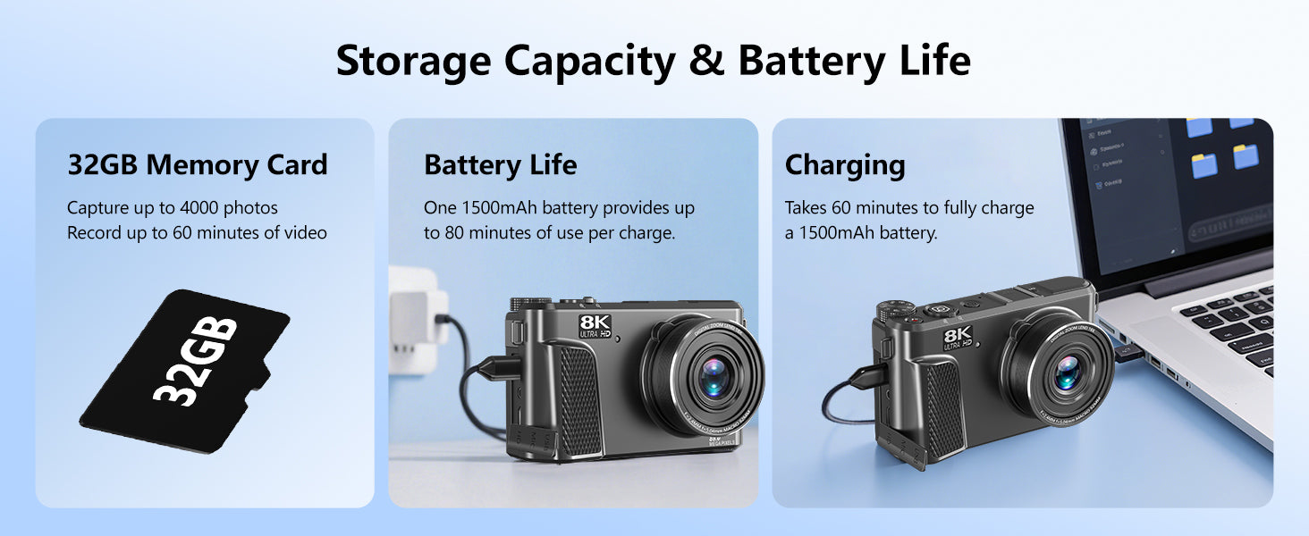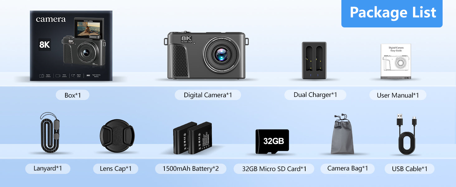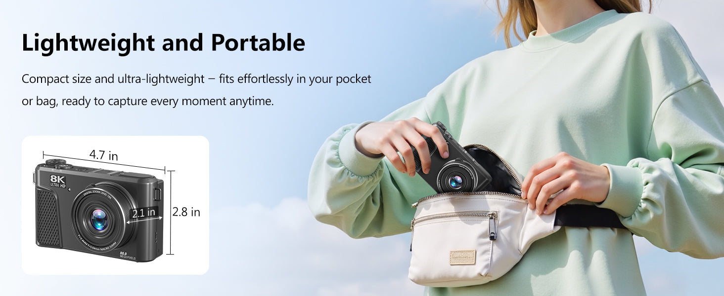 8K-Digitalkamera mit 88 MP und 3-Zoll-180°-Klappbildschirm