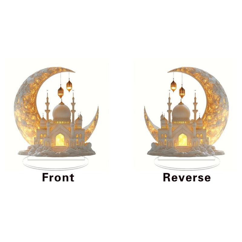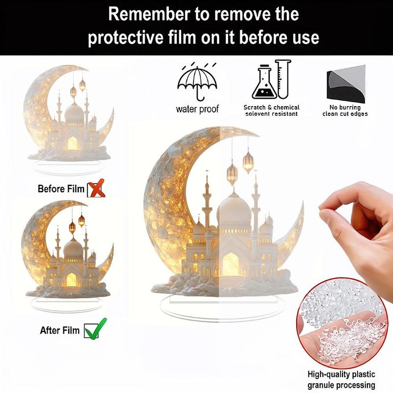 Tischdekoration mit Ramadan-Moscheemotiv und Sockel, 1 Stück, 2D-Acryl-Tischornament mit flacher Optik, multifunktionale Dekoration für Esstisch, Büro oder Schreibtisch im Studentenwohnheim.