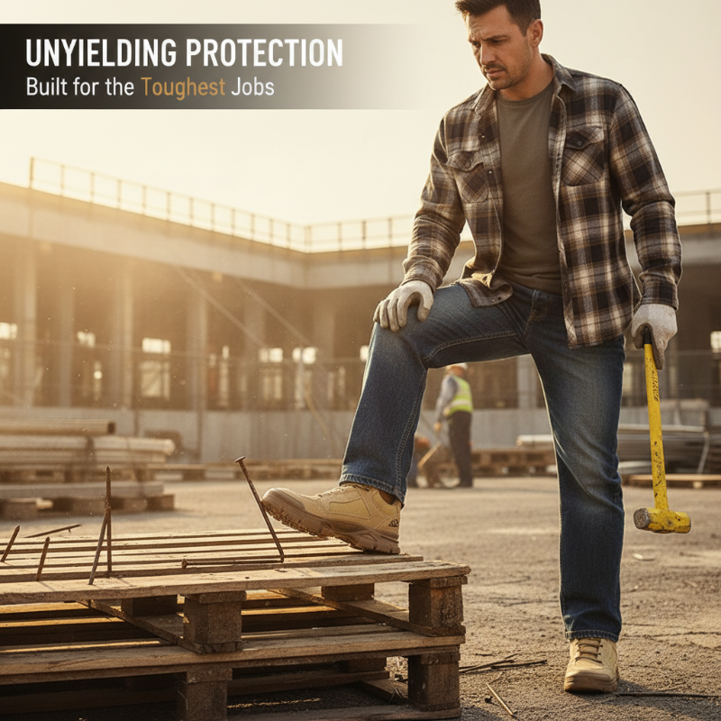 ANTI-STURZSCHUTZ – Ausgestattet mit einer robusten Zehenkappe schützen diese Sicherheitsarbeitsschuhe Ihre Füße vor Stoß- und Druckgefahren in anspruchsvollen Umgebungen und gewährleisten maximalen Schutz vor herabfallenden Gegenständen und schweren Maschinen, ohne den Komfort bei langen Schichten zu beeinträchtigen.