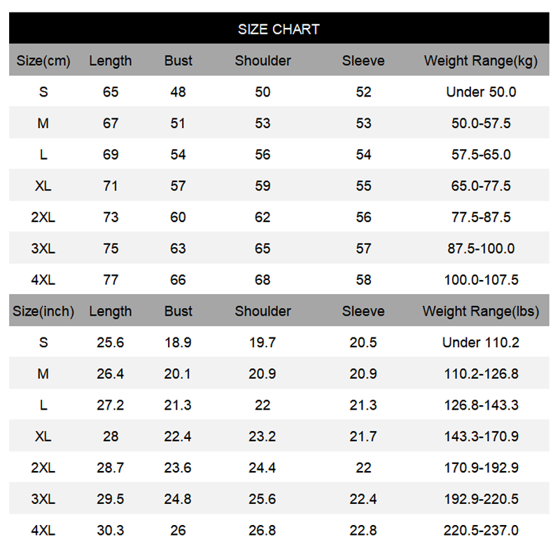 Größen: S, M, L, XL, 2XL, 3XL, 4XL
