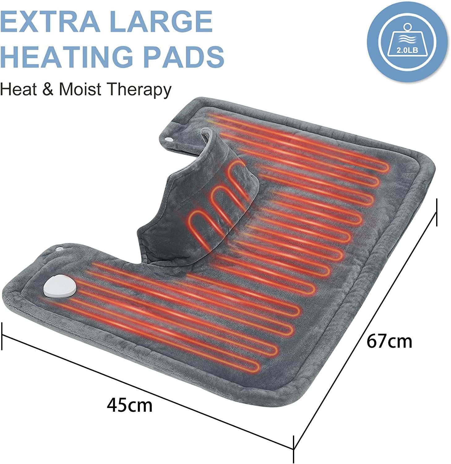 Dieses 61 x 94 cm große Heizkissen passt sich optimal an Nacken und Schultern an und sorgt für gezielte Linderung und Entspannung. Die beschwerten Ränder halten es sicher an Ort und Stelle und hüllen Sie in wohltuende Wärme. Es ist außerdem vielseitig einsetzbar und lindert Schmerzen an Taille, Armen, Beinen und mehr!
