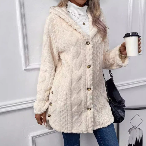 Warme Damenjacke mit Kapuze und Rautenmuster